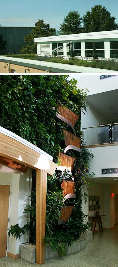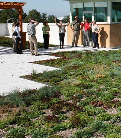 Green roofs reduce stormwater runoff and stream sedimentation, and can improve a building's insulation.