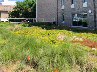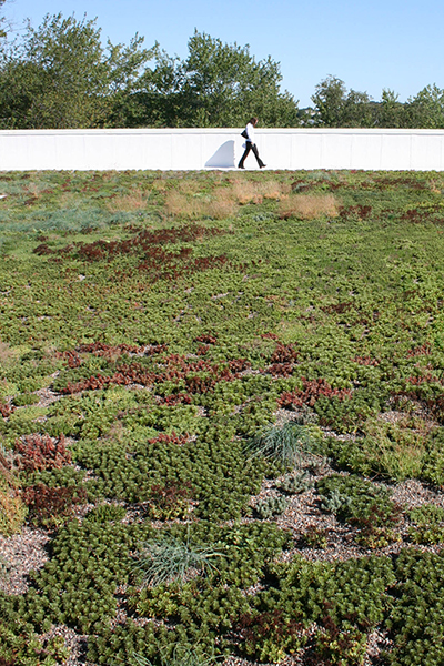 A green roof can manage stormwater and be visually appealing.
