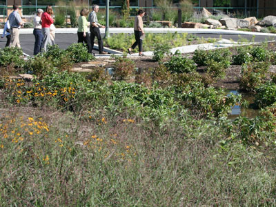 Rain gardens and vegetated roofs can be encouraged.