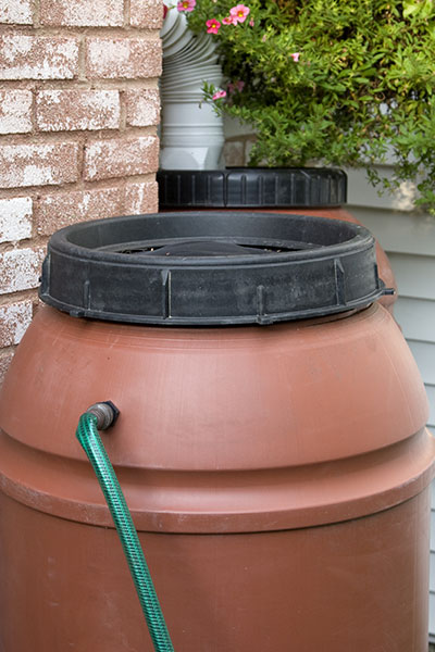 Rain barrels can help to reduce stormwater runoff and provide water to irrigate gardens.
