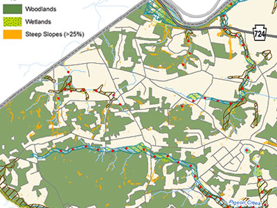 East Bradford Township has established a steep slope conservation district in the zoning ordinance, which is an overlay to all other zoning districts.