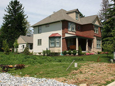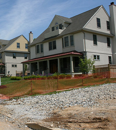 Parking for new homes should reflect the character of the neighborhood, such as these new homes in West Chester that have parking behind the buildings in new garages.