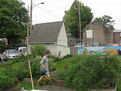 A community garden in West Chester Borough is an example of an urban greenspace that can help mitigate urban heat islands.