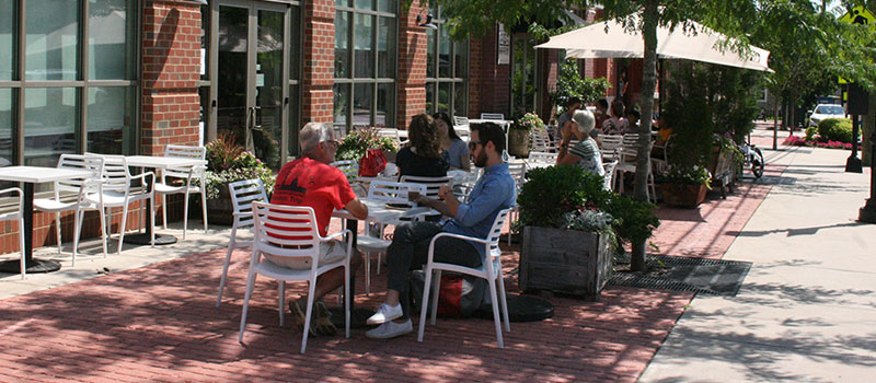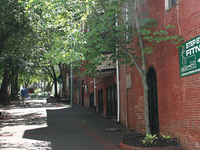 Trees and buildings shade this pedestrian alleyway in Phoenixville, reducing heat emitted from the pavement and buildings.