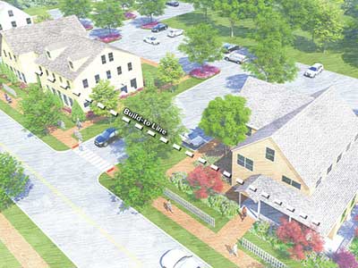 - Avoid standalone garages, and instead integrate parking behind, on top, or below new buildings.