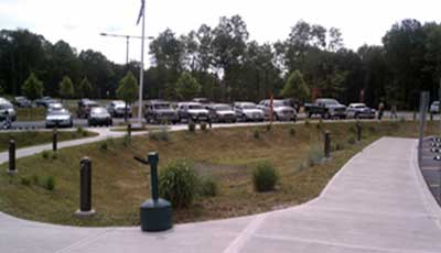 Surface parking lots have traditionally been developed with large expanses of asphalt resulting in a significant increase in stormwater runoff. The stormwater was then collected by a drainage system where runoff from large storm events would be temporarily stored in a retention basin then slowly released through control structures into the natural drainage systems. This general concept has been revised and reflected in Pennsylvania through the State's adopted erosion and sediment control regulations where the focus is to infiltrate or recharge a much larger portion of this runoff into the ground. As part of this shift, the National Pollutant Discharge Elimination System (NPDES) as authorized by the federal Clean Water Act now requires a permit for any earth disturbance exceeding 1 acre, where the threshold was previously 5 acres. These permit applications are reviewed by the local Conservation District as part of the land development process.