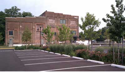 Example of vegetated bioswales within parking islands at Riverfront Park, Pottstown, PA