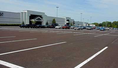 This parking lot is solid paving with no trees, a bad example of parking lot design.