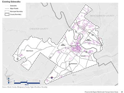 Zoning and subdivision and land development ordinances should be analyzed and amended to support the development of appropriate bicycle and pedestrian facilities. Pheonixville region example.